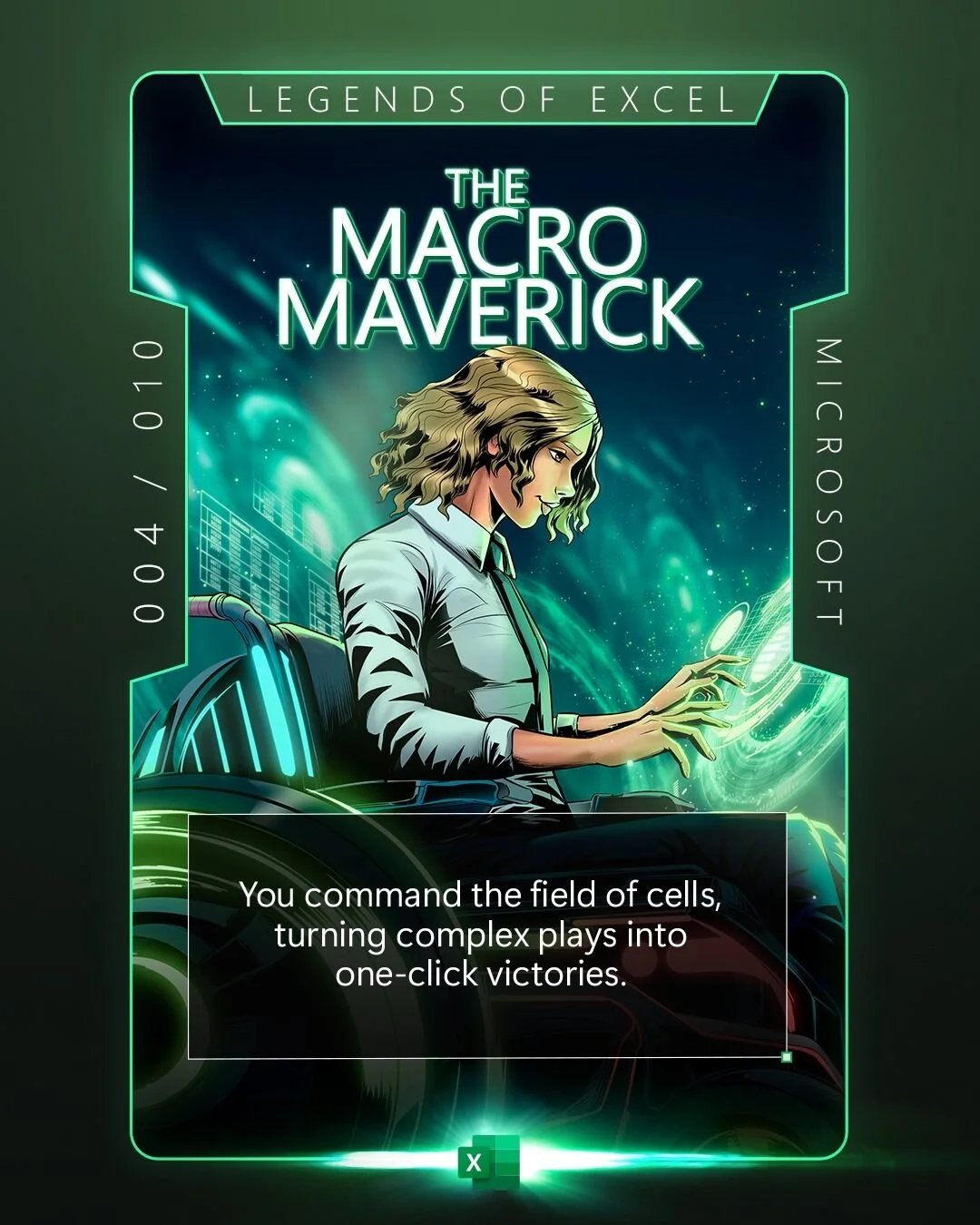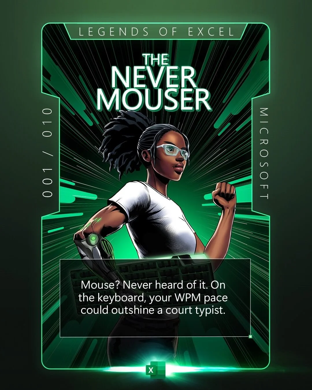 Insider baseball cards, so to speak. A set of digital cards to celebrate iconic Excel archetypes users could adopt as their own.